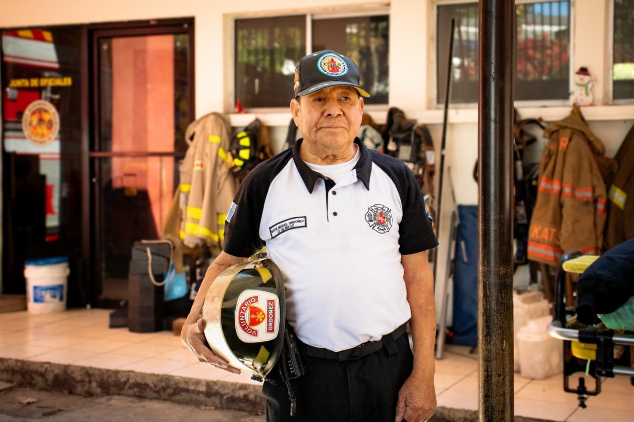Manuel Ordóñez sigue en servicio en la 100.ª Compañía de los Bomberos Voluntarios en Mixco. Foto: B. P.