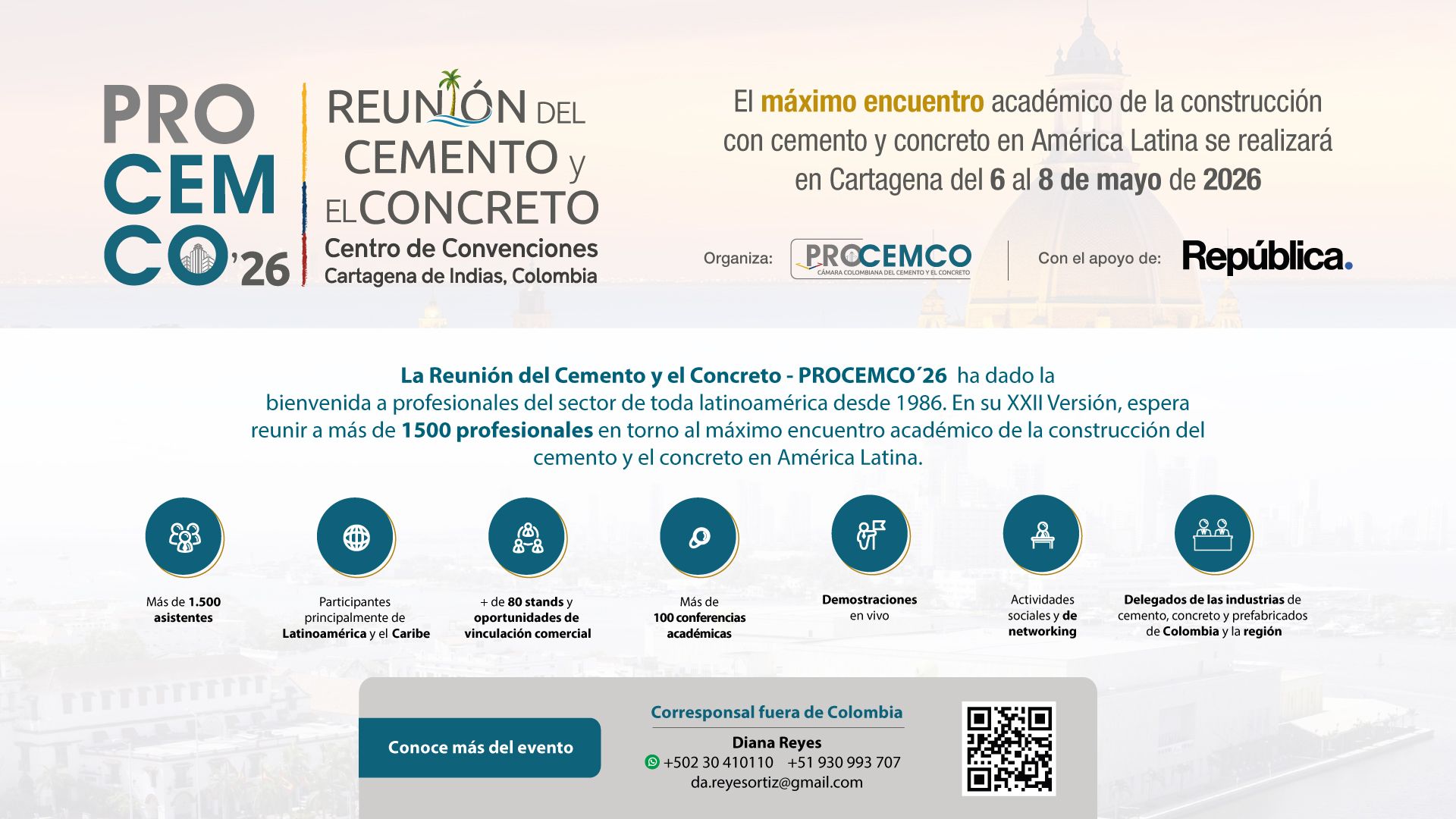 La Cámara Colombiana del Cemento y el Concreto organiza el evento más esperado de la industria: Reunión del Cemento y el Concreto- PROCEMCO 2026, del 6 al 8 de mayo, en el Centro de Conveciones, en Cartagena de Indias, Colombia.