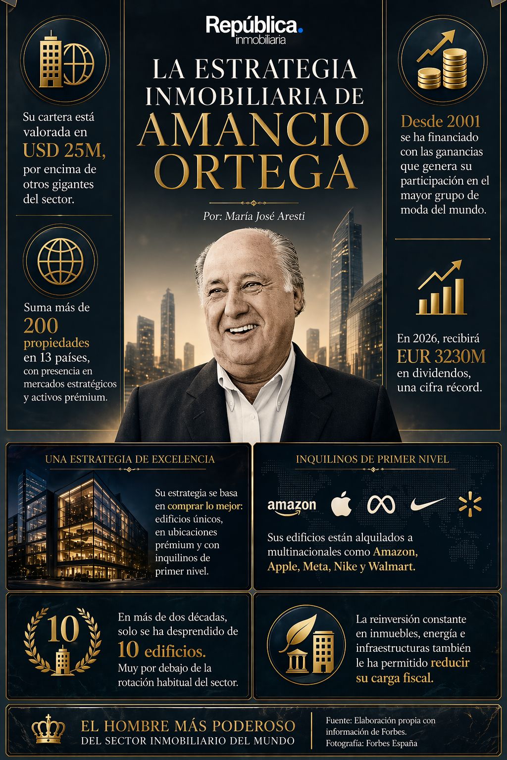 Esa lógica le ha permitido convertir el flujo de caja del negocio textil en una cartera global de inmuebles prémium. Así trasladó el músculo financiero de la moda al real estate y terminó por convertirse en el mayor magnate inmobiliario del mundo, con una plataforma patrimonial basada en renta, valorización y permanencia.